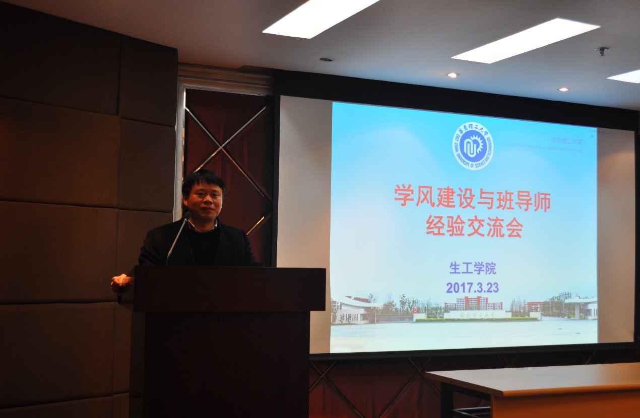 王启要首先汇报了2017年全校本科教育教学工作要点,并通报了学院学风、考风的总体情况, 要求各班导师采取及时有效的措施加强班级学风建设。他强调班导师是学校育人工作的重要力量,是学生健康成长的领路人,是学业发展的导航人,并对校班导师工作条例进行了解读。