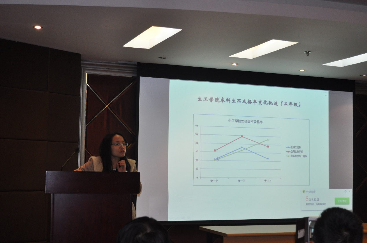 吴蓉就学生的学习与成长两方面进行了简单的发言。在本科学习方面,她认为学生学习挂科背后的原因主要有:学生没有明确目标、大面积课程难度高以及专业课题介入晚等。在学生成长方面,她建议各位班导师帮助学生尽快找到大学学习目标,并注重过程的控制和习惯的培养,同时,也要密切关注学生的身心健康,关注特殊学生,做到及时沟通、早期介入。