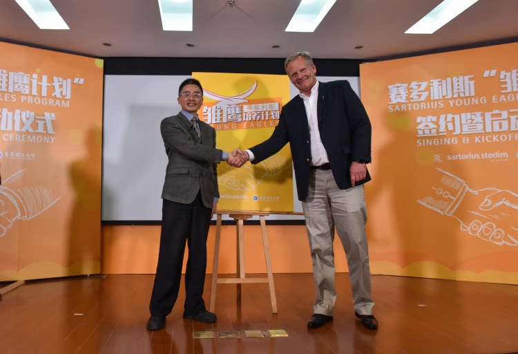 与赛多利斯斯泰帝(上海)贸易有限公司,在实验十八楼315举办了2017年度雏鹰计划签约暨启动仪式。出席签约仪式的有赛多利斯亚太区高级副总裁Dr.Joerg Lindenblatt,韩漫
