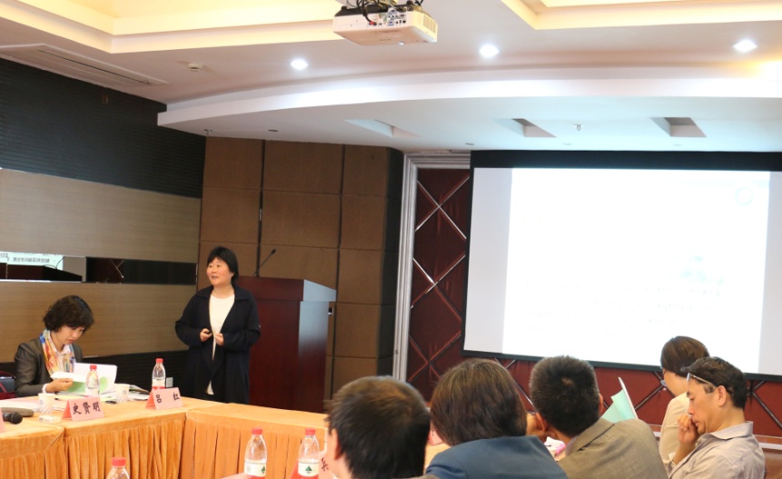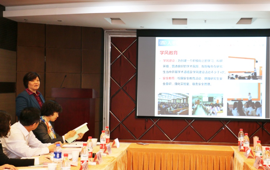 庄英萍教授在汇报生物化学与分子生物学学位点情况