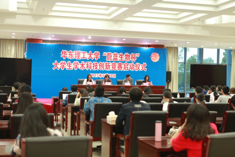举办了首届“蔚蓝生物杯”大学生学术科技创新竞赛启动仪式。青岛蔚蓝生物股份有限公司总裁陈刚、人力资源部总经理郎春燕,韩漫