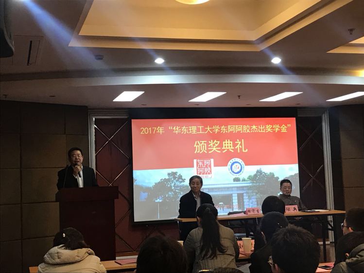 -东阿阿胶杰出奖学金”,每年出资六万,用于奖励华东理工优秀本科生、硕士生、博士生各两名。