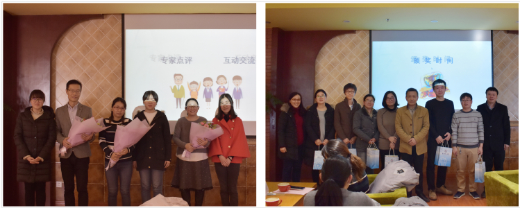 青年教师课堂教学竞赛一等奖获得者赵丽霞老师、田振芬老师,及张杰老师现场授课展示,让大家体验如何以精湛的授课艺术吸引学生。第一届“张江树教学名师奖”获得者张惠展教授结合讲课艺术的关键点对三位教师的授课展示进行了逐一点评,使在场青年教师受益匪浅。到场的学生代表还为三位老师献上了鲜花,以表崇敬和感谢之情。最后,活动设置了现场课件制作比拼环节,每组抽取两位老师,在规定时间内按给定素材和要求完成一页PPT的制作,并通过青年教师现场投票和专家投票评选出PPT制作前三名。比拼活动将本次沙龙推向高潮,短短15分钟的制作也充分展现了韩漫