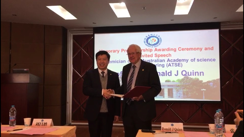 4月6日上午,澳大利亚科学与工程院院士、澳大利亚格里菲斯药物发现研究所Ronald J. Quinn院士受聘为韩漫