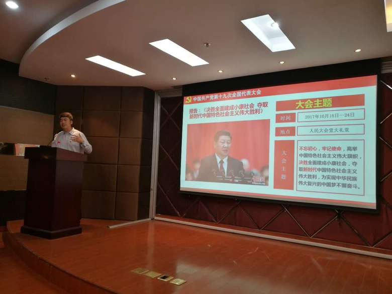 刘博副教授分别从中国特色社会主义新时代、习近平新时代中国特色社会主义思想、中国共产党的新征程三个方面向大家详细讲述了党的十九大报告,并进一步阐述了全面从严治党的涵义,解读了“不忘初心、方得始终”和“大道之行,天下为公”的真正意义。