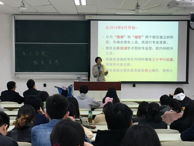 2019届推免宣讲会于4月16日中午在奉贤校区D教举行。会议由韩漫