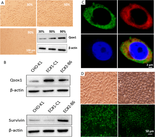 本研究基于细胞合成生物学理论,利用CRISPR/Cas9基因编辑先进技术,对常规市售CHO-K1细胞开展了人源HsQSOX1b和Survivin的双基因精准编辑,在建立快速高效的宿主细胞改造技术平台的同时,并以eGFP和GLuc2种蛋白为示范,在探究内质网中二硫键形成与蛋白质折叠、内质网未折叠蛋白应激反应(UPR)和细胞抗凋亡三者之间的分子机制基础上,成功地获得了比未经编辑的对照细胞株抗凋亡能力提升6.4倍、目的模式蛋白产量提高5.5倍的双基因编辑细胞株(CHO-K1-EC2) , 这将为我国从源头强化抗体高效生产细胞株提供了重要的理论依据,同时有望为我国广大民众未来用得起价廉、安全、高效的生物技术药物提供重要的技术支撑。