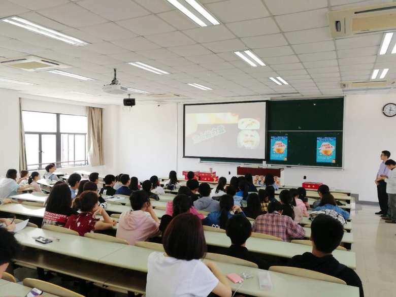 2018年5月11日下午,“2018年康师傅校园创意大赛”宣讲会在奉贤校区B401教室举行。中国食品科学技术学会陶金亚先生、康师傅(控股)有限公司范冬雪女士、学工委主任吴蓉、食品系主任周英副教授、17级辅导员徐亚飞以及韩漫