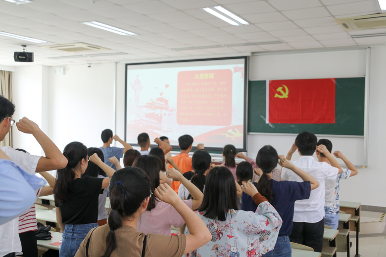 研究生党员代表、2018年新发展党员、入党积极分子以及辅导员张士杨、邓亚珊、徐亚飞共120余人参与了此次活动。