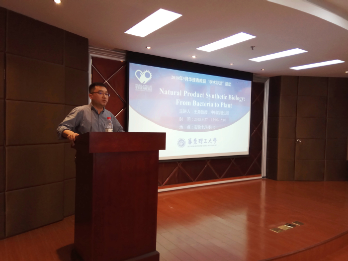 青教联承办的学术沙龙活动于9月27日下午在徐汇校区实验十八楼如期举行。本次学术沙龙活动邀请到了来自中国科学院植物生理研究所的王勇教授,报告的主题是“天然产物的合成生物学:从微生物到植物”。报告吸引了多位青年教师及在读博士生前来参会。