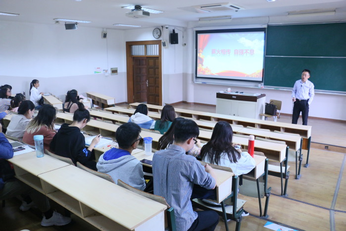 在四教举行研究生新生党员教育交流会。党委书记陆兵以“薪火相传,自强不息”为主题,为18级新生党员和入党申请人上了一堂精彩的党课。