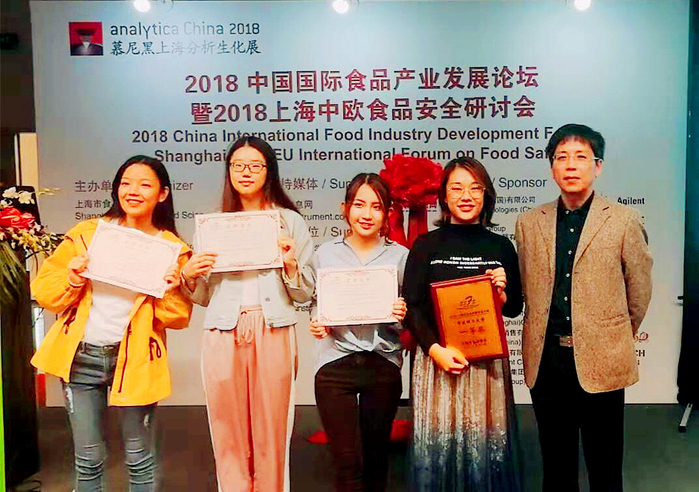 参赛选手沈瑜、连昱涵、潘小旭、刘昱妏的作品“欢乐球球”荣获一等奖。上海市食品学会理事长潘迎捷、副理事长王锡昌,副秘书长周家春教授及清美左龙武副总经理等出席颁奖典礼并为获奖选手颁奖。