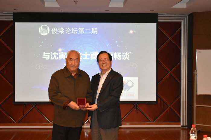在互动环节,实验室几位青年老师就自身科研规划等问题请教了沈院士,沈老和蔼耐心地做出了解答和指导,讲述了自己的人身感悟,让在座的年轻人学到了很多人生哲理,沈院士身上那种奋发向上、不断追求的精神,刻苦钻研、脚踏实地的态度,锲而不舍、勇往直前的气势都值得我们学习。最后,为了表示对沈院士教导和教诲的感谢,曲景平校长代表学校和重点实验室向沈院士赠送了“俊棠论坛”奖章。