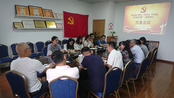 党委18级硕士联合党支部与后勤党委徐汇联合党支部以“喜迎建党98周年,不忘初心、牢记使命,推进落实后勤三服务两育人”为主题开展支部共建活动,双方支部的党员、发展对象、积极分子、学院研究生辅导员孙希彤以及后勤党委副书记兼后勤保障处副处长杨雅伟、应邀参加本次活动。