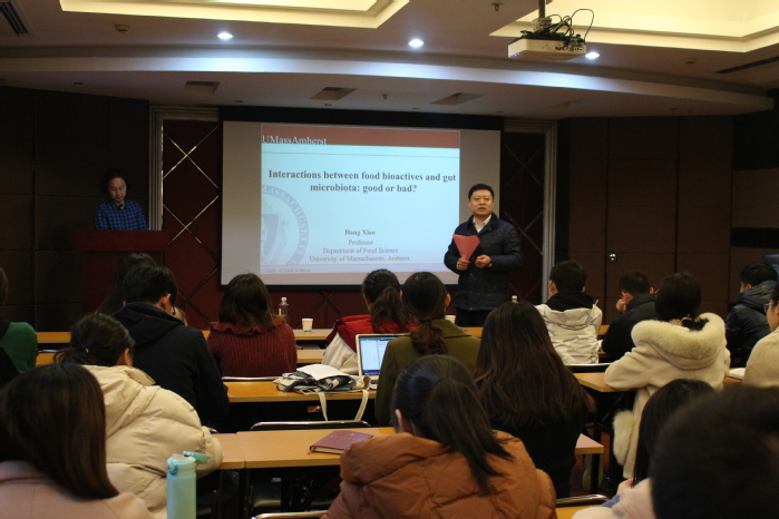 访问,肖航教授为学院师生作了题为“Interactions Between Food Bioactives and Gut Microbiota: Good or Bad?”的精彩学术报告,报告会由赵黎明教授主持。