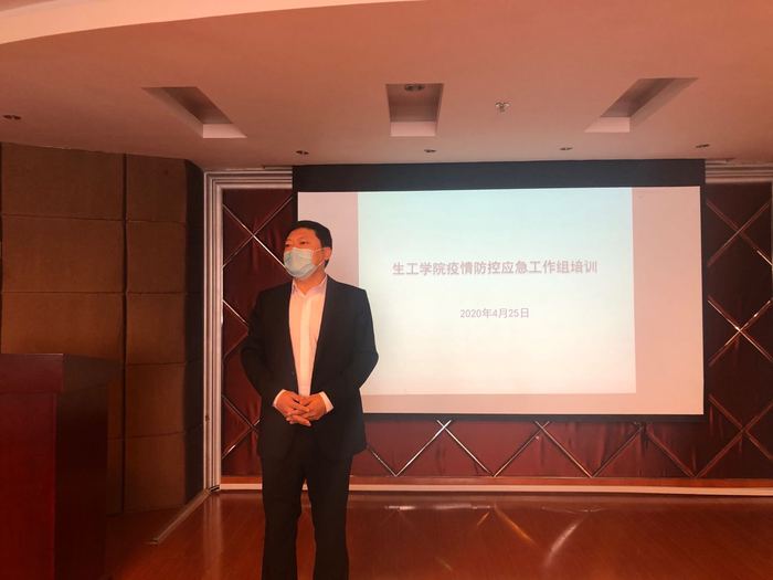 疫情防控应急处置培训中,陆兵详细介绍了学校和学院的防控措施、应急工作组任务与分工、隔离场所及应急处置流程等;左鹏副书记介绍了学生返校工作安排及要求;庄英萍院长强调了应急工作组任务重点,并提醒大家注意个人防护,安全有序开展工作。