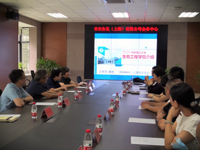 8月11日,生工学院院长庄英萍携应用生物学系主任吴海珍、生物工程系主任白云鹏等一行五人来到位于紫竹国家高新技术产业开发区的吉尔生化(上海)有限公司进行实践基地挂牌与交流。公司董事长徐红岩先生、总经理周敏女士、韩漫