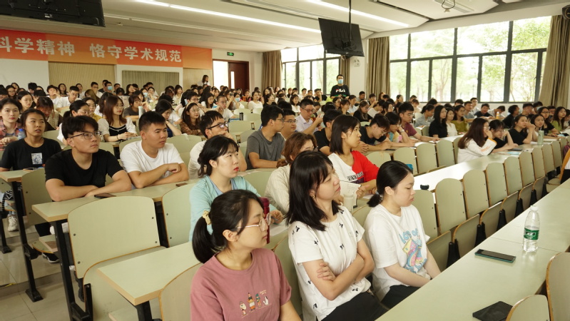 瞿教授为同学们详细介绍了病原微生物实验室相关的生物安全、国家实验室生物安全相关的法律法规以及实验室生物安全防护水平的分类和对比。瞿教授结合自身工作经验及相关生物安全案例,告诉同学们实验室管理人员和工作人员在做好实验室安全管理中的重要性,强调树立生物安全防范意识,做好生物安全风险治理,防患于未然。瞿教授深入浅出、幽默风趣的讲解博得在场同学的阵阵掌声。
