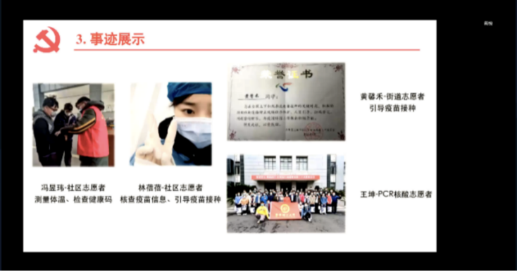 第二批PCR检测志愿者,现已随队出征,正在一线实验室。王坤表示,很荣幸能为上海市疫情防控贡献出华理力量,虽然前线的工作很辛苦,但志愿者们敢吃苦能吃苦,大家团结一致,必将打赢这场硬仗。由于现在上海市防控形势仍然复杂严峻,他表示,作为一名党员必须以身作则,遵守纪律,服从命令,坚持就是胜利,坚持才能胜利。生物学与食品科学硕士奉贤党支部的王奕嘉同志分享了在学校封控管理期间,她与室友一起解压放松的方式,虽然很遗憾不能奔赴前线,但会在后方传播正能量。