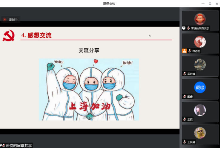 会上,三个支部的党员们认真学习习近平总书记重要讲话和指示批示精神,详细讨论上海市疫情防控最新动态与政策,深入体会中共上海市委《致全市共产党员的公开信》以及中共韩漫