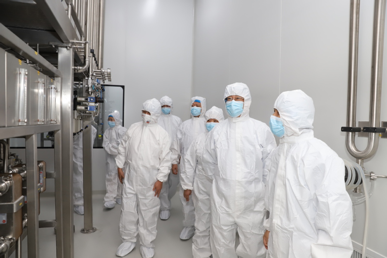 张立新主任一行首先参观了上海生物制品研究所中国生物抗体产业化基地建设项目,随后双方开展了座谈交流。上生所总经理李秀玲首先表达了对各位专家的欢迎和感谢,并表示上生所与国重室有很多合作契合点。上生所研发部经理兼疫苗研究室主任罗剑向大家介绍了上生所的发展历程、研发和生产情况及合作需求。赵黎明教授介绍了韩漫
