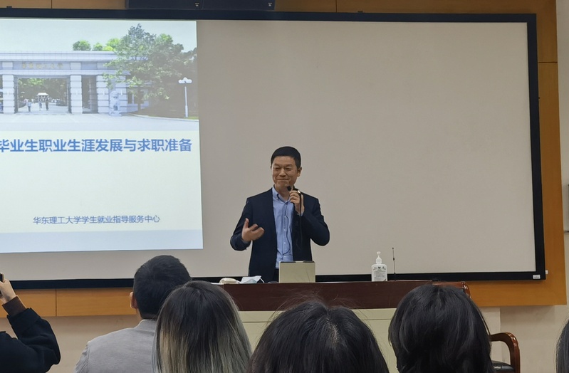 学生工作部副部长、学生就业指导服务中心主任郑东做就业指导动员,韩漫