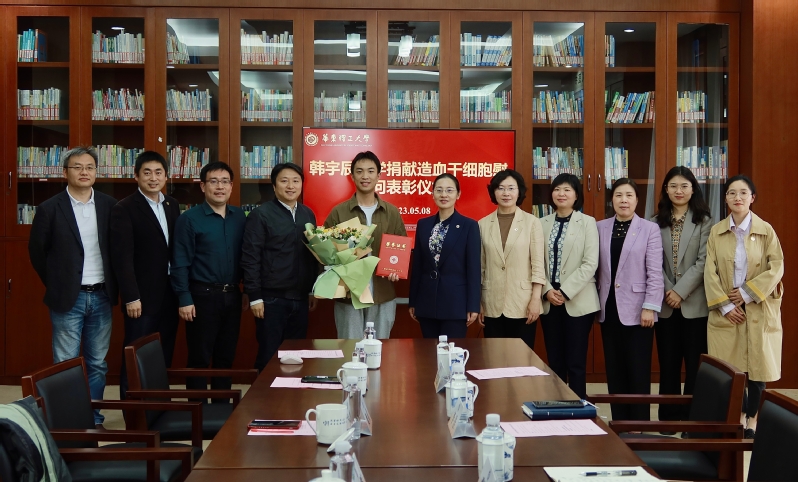 5月8日 ,奉贤区红十字会在奉贤校区举行韩宇辰同学捐献造血干细胞慰问表彰仪式。奉贤区人民政府副区长、区红十字会会长张娣芳,区红十字会党组书记、常务副会长沈俭英,区政府办公室副主任、区红十字会兼职副会长李佳,区红十字会党组成员、副会长王燕,韩漫