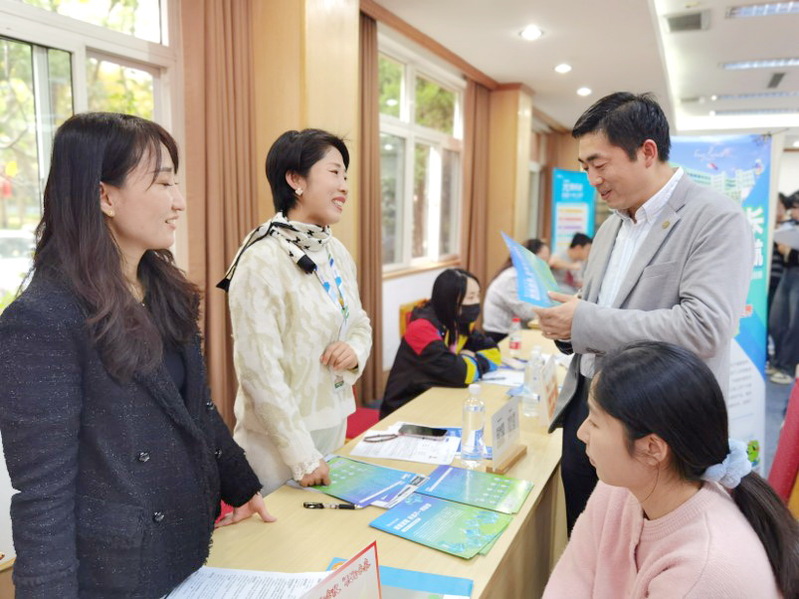 党委副书记左鹏来到现场,与参会单位和学生深入交流,听取用人单位对于学院生物医药相关人才培养和毕业生就业工作的意见建议,悉心询问毕业生的求职需求和困扰。