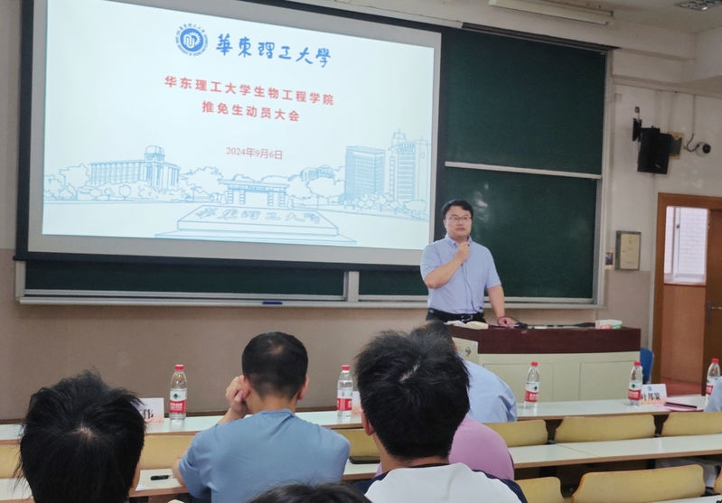 在徐汇校区召开了2021级本科生推免生动员大会,学院党委书记程家高、院长叶邦策、副院长王启要、学院研究生招生秘书余娟、大四学生辅导员郭瑞阳和大四学生200余人参加此次动员大会。本次会议由副院长郑高伟主持。
