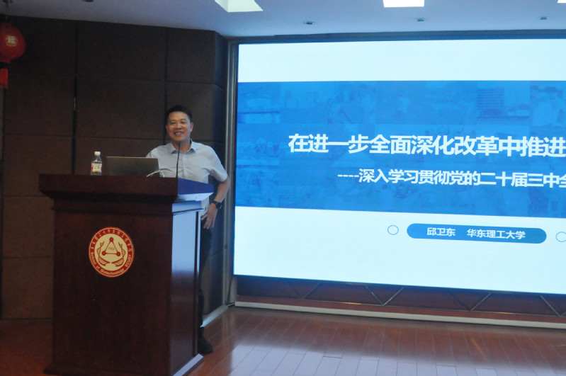 举办学习贯彻党的二十届三中全会精神专题辅导会,邀请马克思主义学院副院长邱卫东作专题辅导报告。韩漫