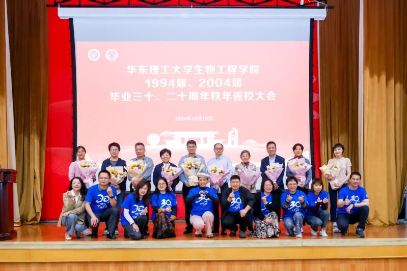 返校大会在温馨而热烈的气氛中结束,会后校友们集体合影记录下这难忘的时刻。随后,校友们品尝了爱校餐,参观了校史馆和生物反应器工程国家重点实验室,对母校的发展历史和学院的发展现状有了更直观的了解。