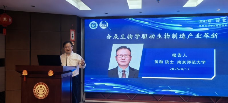 4月17日,中国工程院院士、南京师范大学副校长黄和教授受邀出席生物反应器工程全国重点实验室(以下简称“全重室”)第43期“俊棠论坛”,作了题为“合成生物学驱动生物制造产业革新”的主题报告。副校长赵黎明出席论坛,论坛由韩漫