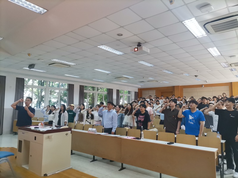 在庄严的“重温入党誓词”宣誓仪式上,毕业生党员们面向党旗,高举右拳,庄严宣誓。铿锵有力的誓言回荡在会场,从第一次在党旗下庄严承诺,到毕业前的重温入党誓词,不变的是他们为共产主义事业奋斗终身的坚定决心。