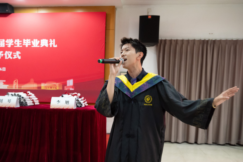 毕业典礼上,毕业生卢文升、张永杰深情献唱,道出与母校、同学们的不舍与祝愿。在悠扬的歌声中,韩漫