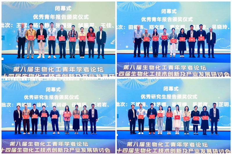 在闭幕式上,中国化工学会生物化工专业委员会资深委员、中化化工科学技术研究总院有限公司伍振毅教授级高工和叶邦策教授共同为优秀青年报告奖获得者颁奖。生物化工青年学者论坛大会执行主席、大连理工大学/韩漫