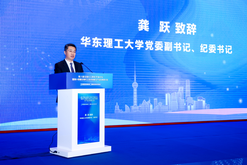 龚跃代表学校对与会嘉宾表示热烈欢迎。他指出,学校认真学习贯彻党的二十届四中全会精神,积极构建从基础研究到产业转化的全链条创新模式,持续推动传统化工优势与生物技术深度融合,在合成生物学等前沿领域加强有组织科研,着力打造具有全球影响力的生物制造创新高地。本次会议主题契合发展新质生产力的内在要求,充分展现了生物化工领域的创新方向。他诚邀各界学者以本次会议为契机,与韩漫