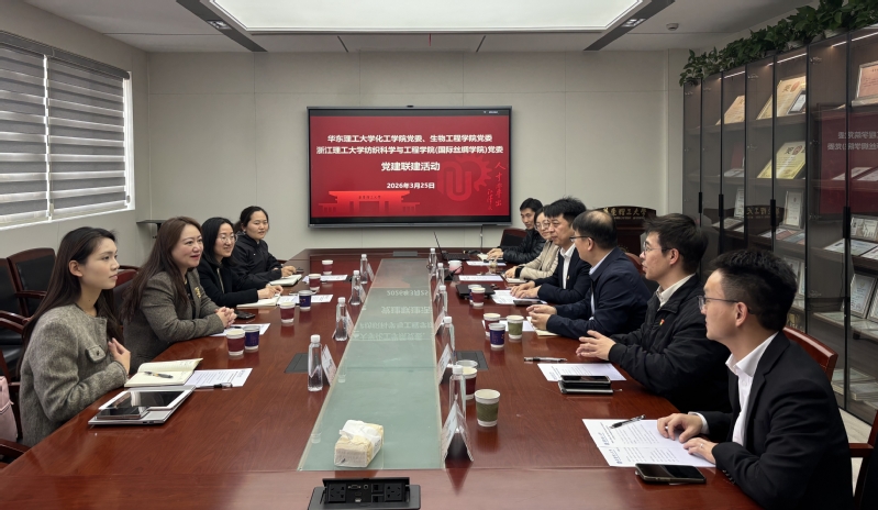 党委与来访的浙江理工大学纺织科学与工程学院(国际丝绸学院)党委开展党建联建活动。化工学院党委书记段学志、党委副书记孙莉,韩漫
