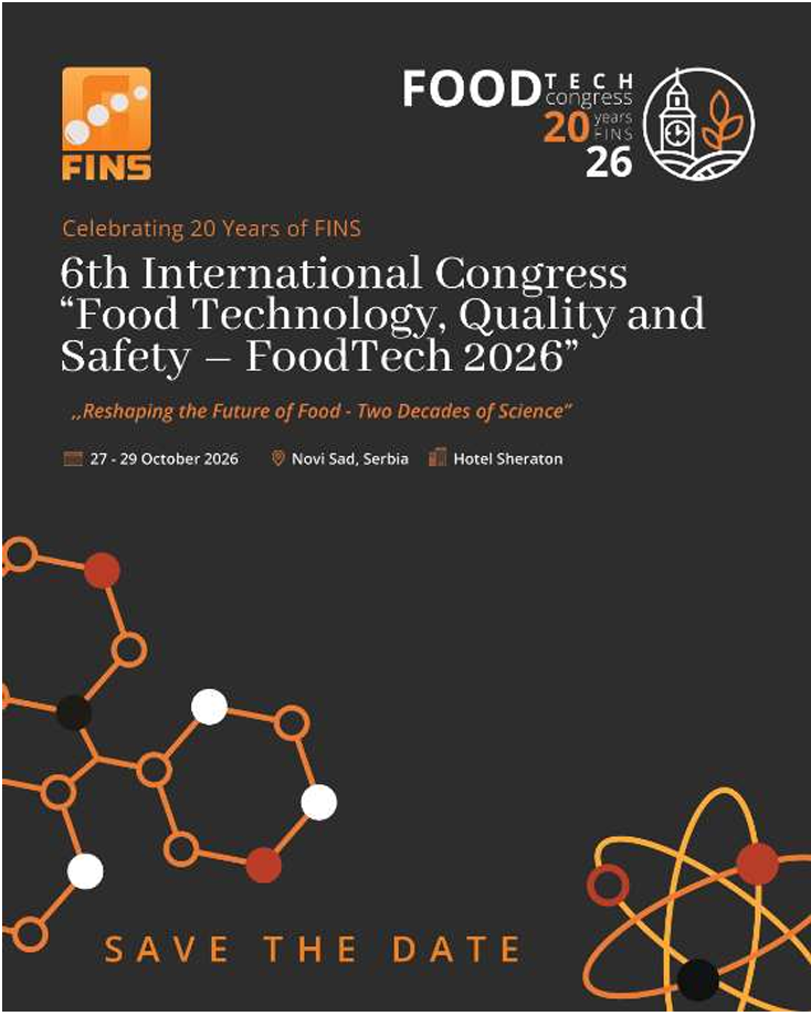 、塞尔维亚贝尔格莱德肉类卫生与技术研究所(INMES)共同主办的第六届“食品技术、质量与安全”国际会议(The 6th International Congress “Food Technology, Quality and Safety–FoodTech 2026”)将于2026年10月27日至29日在塞尔维亚诺维萨德举办。