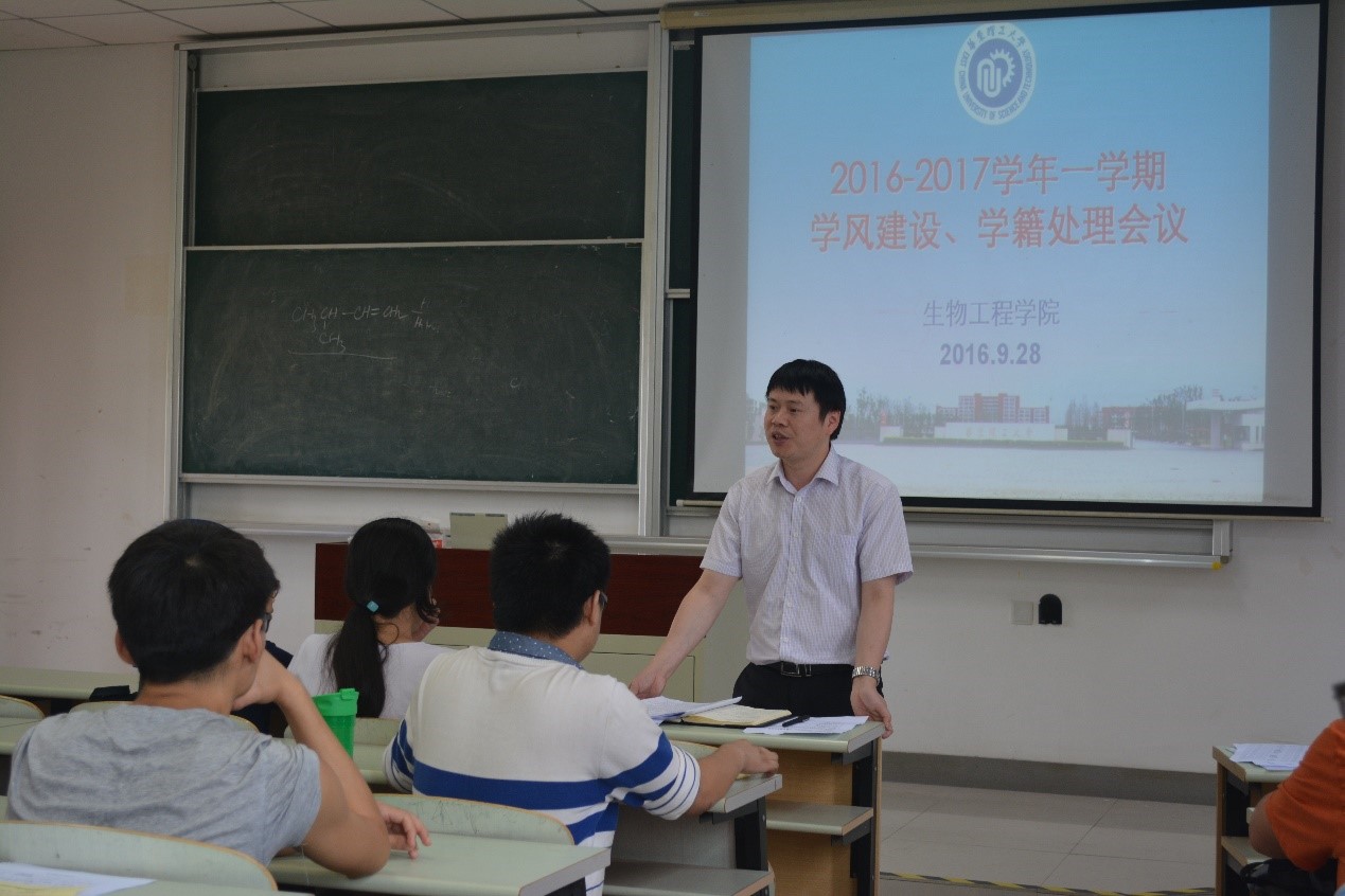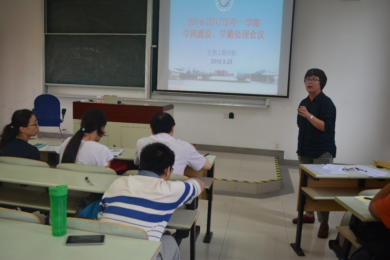 9月28日,生工学院在奉贤校区召开了学风建设、学籍处理会议,学院教学副院长、系主任、辅导员、班导师、教务员、所有学籍处理学生、退学试读学生的家长等出席了会议。