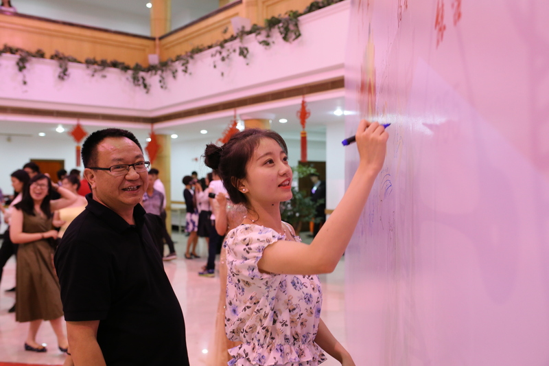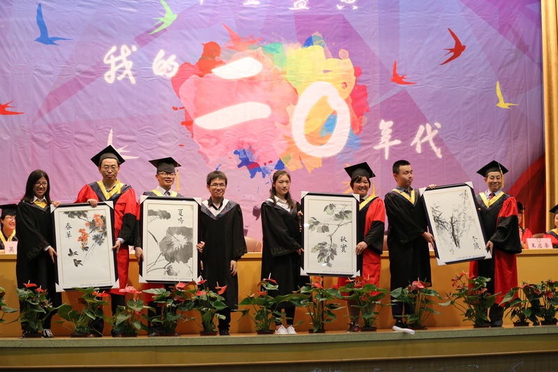 生物化工专业张理想代表毕业生发表了感言,与大家一起回顾了七年的学习生活与青春理想,并为母校送上了深情的祝福。此外,毕业生代表向学院赠送了题有“春华、夏鸣、秋实、冬藏”的四幅国画留作纪念,并向教师及家长代表献上了鲜花,表达了毕业生对母校、老师和家长的感恩之情。