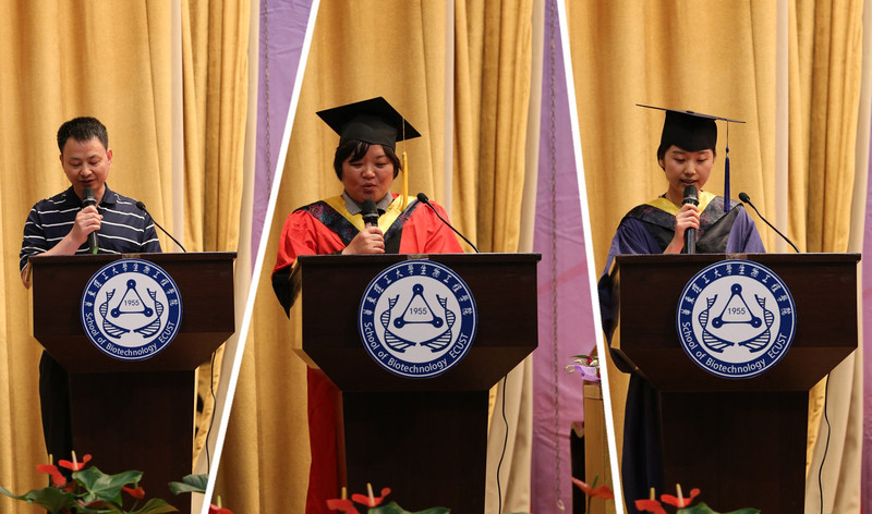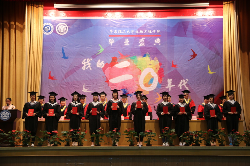 6月20日,生物工程学院2016届学生毕业盛典在逸夫楼报告厅举行。毕业盛典分红毯仪式、毕业典礼及毕业晚会三部分。生工学院院长庄英萍、党委书记陆兵,院学位委员会主任张元兴,院学位委员会委员许建和、谭文松、储炬,副院长卢艳花、王启要,应用生物学系系主任吴海珍、食品科学与工程系系主任周英等为毕业生颁发证书及拨穗正冠。此外,2016届全体毕业生、2012级各班班导师、全体思政辅导员、学院专业教师代表、学生家长代表欢聚一堂,共同见证了这一庄严的时刻。毕业典礼由院党委副书记吴蓉主持。