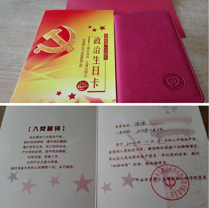 生日Party”上没有鲜花和蛋糕,但每一位毕业生党员都收到了一份特殊的“生日礼物”——一张印有中国共产党党旗、党徽、入党誓词和组织寄语的“政治生日贺卡”和一本“党性记录本”。这一天,48名毕业生党员在鲜艳的党旗下,聆听党课,分享生日感悟,重温入党誓词,度过了自己的“政治生日”。