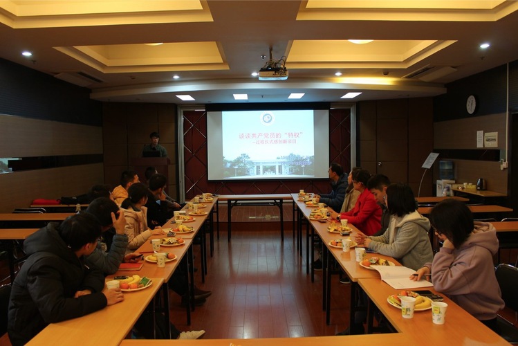 全体党员一起观看了《人民的名义》中老党员陈岩石在省委常委会上的一堂党课。他回忆起为了能够背炸药包这一“特权”,虚报2岁年龄,最终如愿成为了一名共产党员,在战斗中,身先士卒,圆满完成了爆破任务。在座的每位党员都深受感动,并分享了对党员“特权”的理解。接着在学院党委书记陆兵的带领下,所有党员带着崇敬的心情再一次宣读入党誓词。