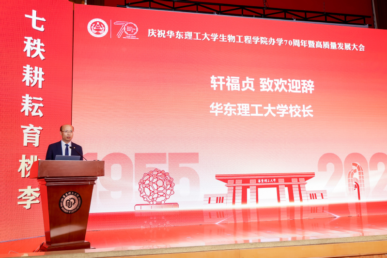 七秩征程,薪火不辍;铿锵前行,华章日新。10月18日,庆祝华东理工大学生物工程学院办学70周年暨高质量发展大会在徐汇校区逸夫楼报告厅隆重举行。我校校长轩福贞出席会议并致欢迎辞。中国工程院院士杨胜利,中国科学院院士李永舫,中国科学院院士、上海大学校长刘昌胜,校党委副书记、纪委书记龚跃,西北大学副校长范代娣,以及来自兄弟院校和企事业单位的嘉宾,曾在生物工程学院学习工作过的老领导、老同志,各届校友,教职工和学生代表等齐聚一堂,共襄盛会。